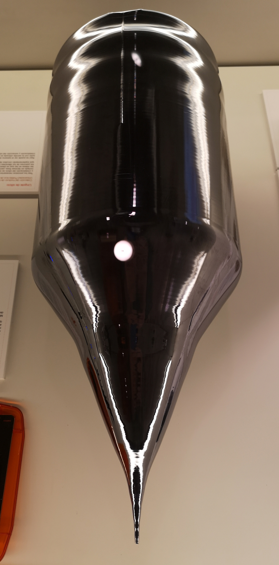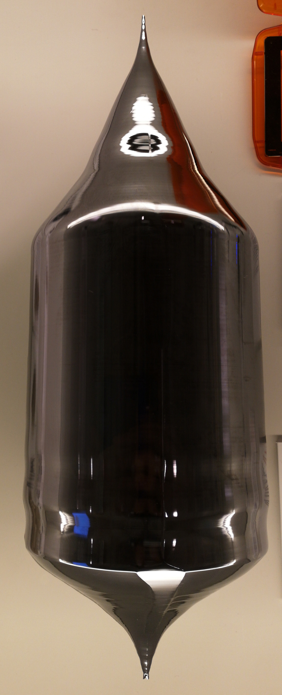 Aquí se puede ver el extremo desechado de un lingote, junto con la semilla utilizada en su proceso de cristalización y extracción del silicio fundido.